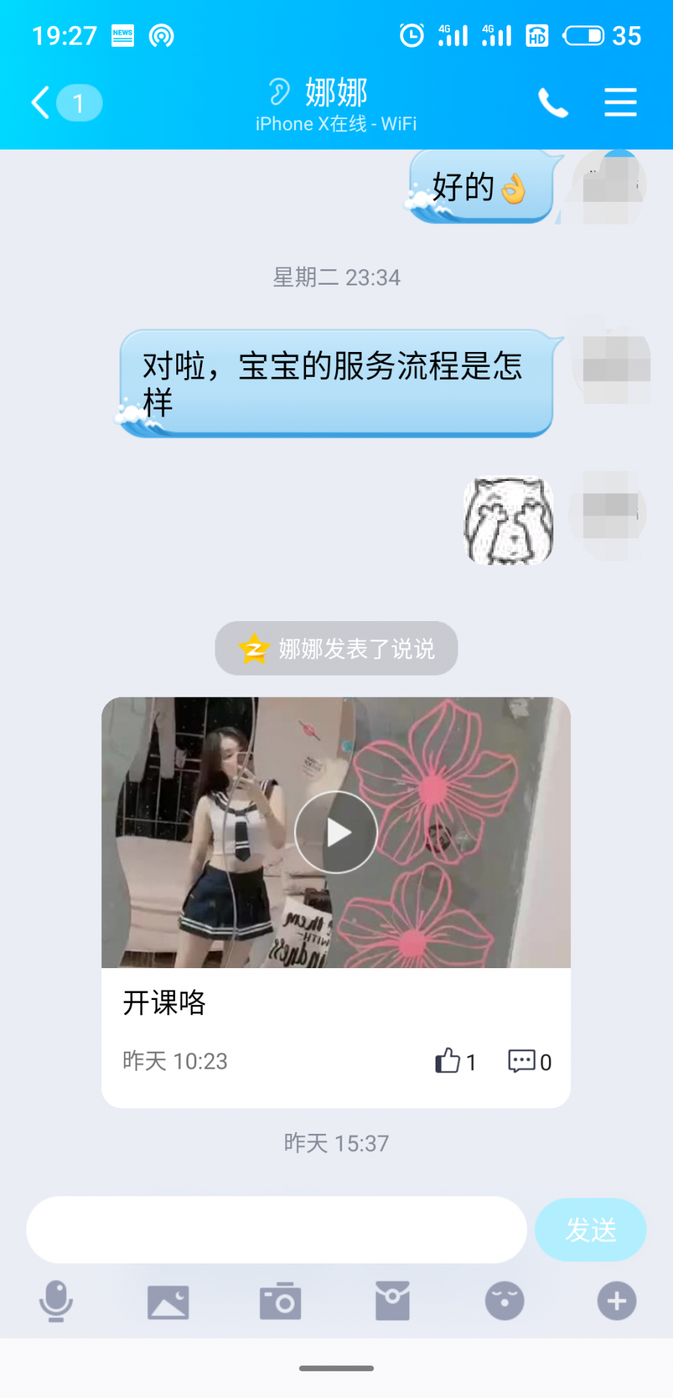 妈的,态度可以说是不耐烦。自己不写清楚,在QQ上问也不说,来了后又问她一次有什么服务。才说300-5