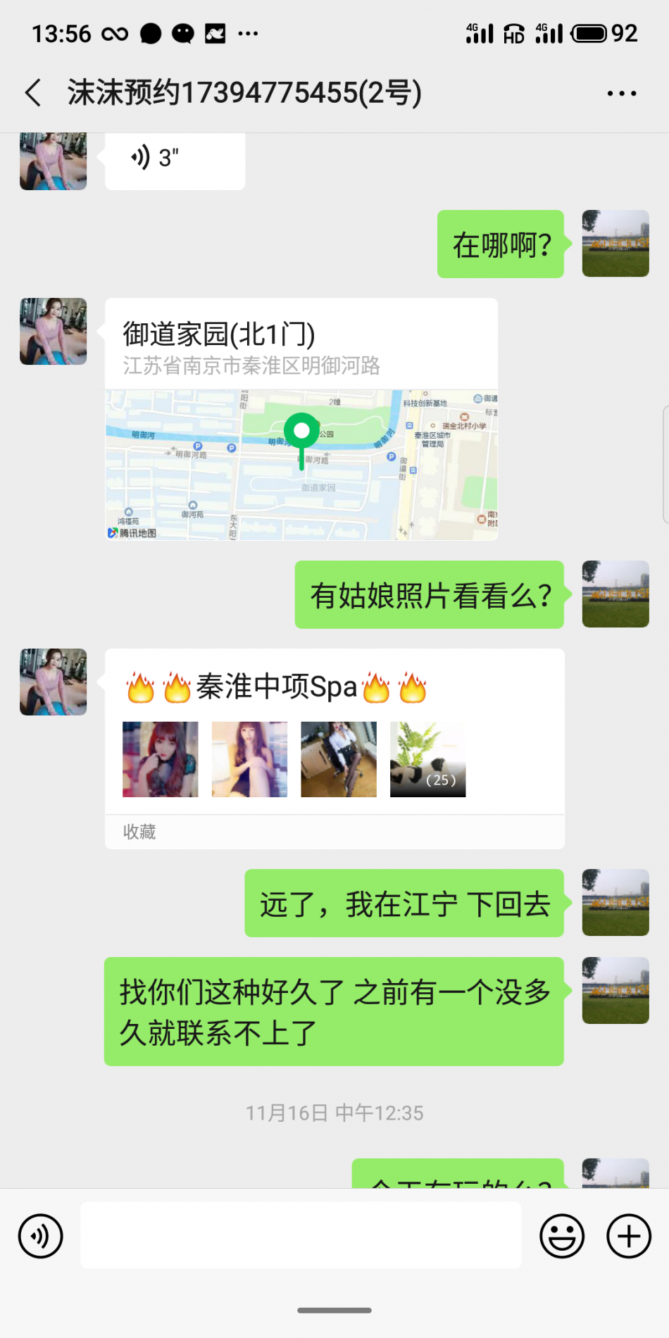陌陌上刷的,问了发现是中项服务,去试了一下,御道家园小区北门口的商铺房,有一个秦淮御生堂spa,但服